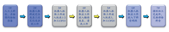 ? ? ? ??(3)料倉上下料、自動識別工件裝夾、換產(chǎn)、生產(chǎn)信息監(jiān)控等,實現(xiàn)數(shù)控機床連線自動生產(chǎn)。